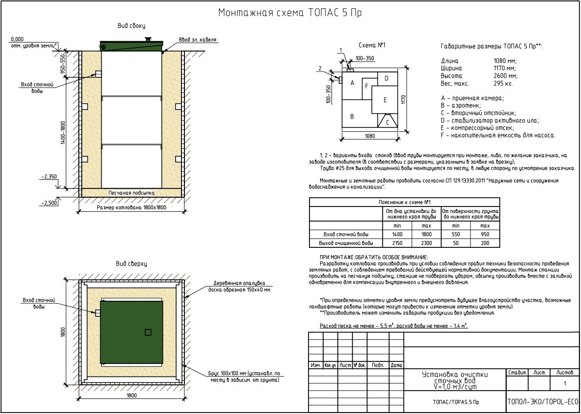 Изготовленная из прочного полипропилена, установка ТОПАС 5 ПР отличается высокой долговечностью, устойчивостью к коррозии и деформации. Ее монтаж возможен при любом уровне грунтовых вод и типе почвы. В процессе эксплуатации не требуется вызывать ассенизационные службы или приобретать специальные микроорганизмы — установка работает автономно и требует минимального обслуживания.