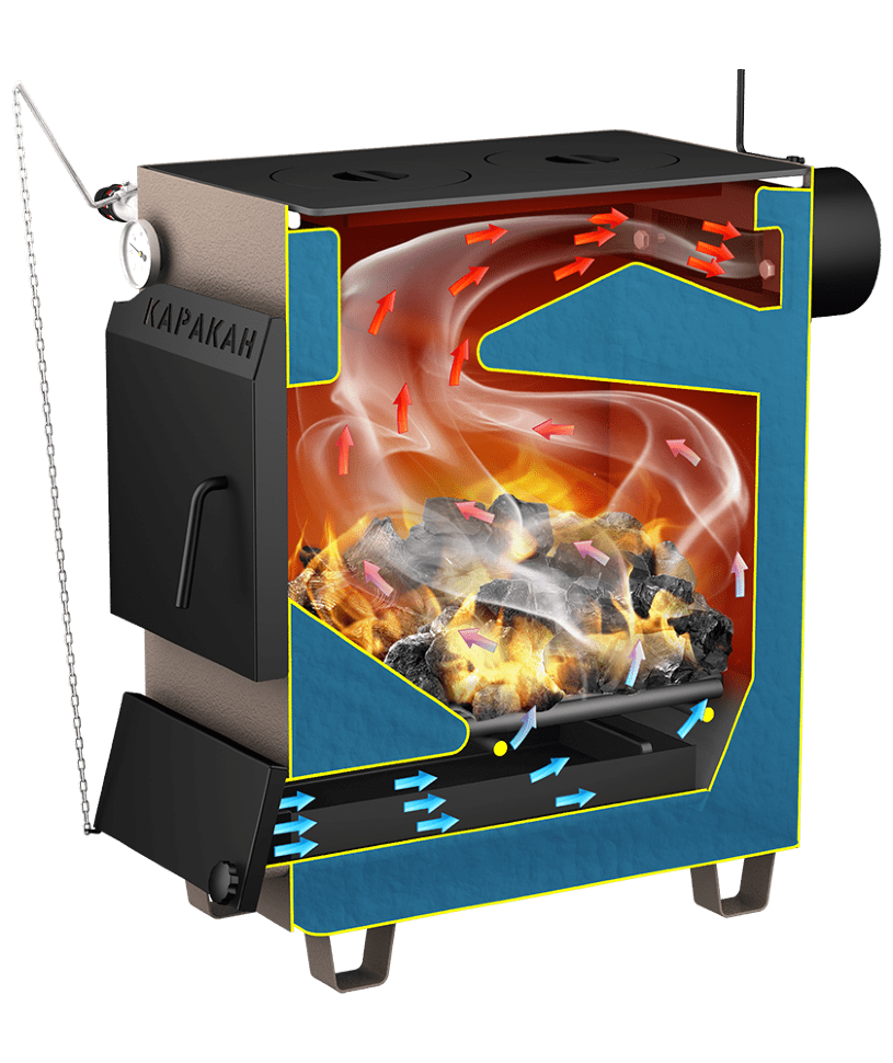 Конструкция модели включает сварной корпус из стали толщиной 3 мм, что обеспечивает надежность и долговечность. В котле предусмотрена варочная плита с двумя конфорками.