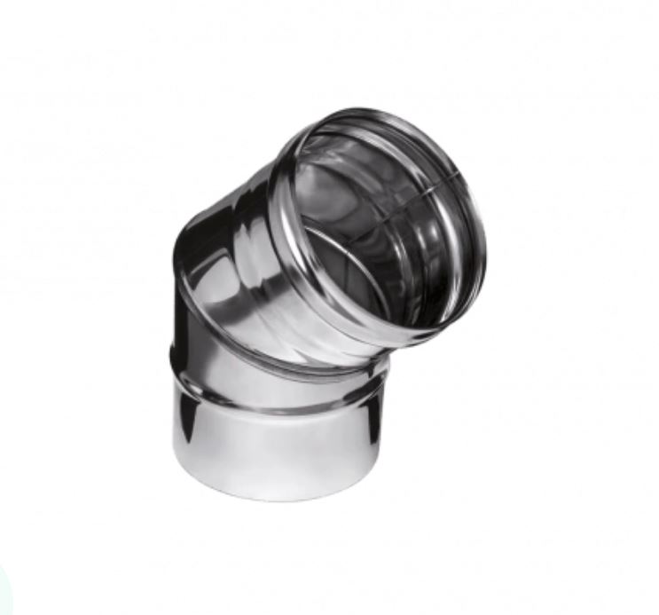 Элемент дымовой системы, предназначенный для изменения направления канала на угол 135° с целью обхода препятствий. Изготовлен из нержавеющей стали AISI 430.