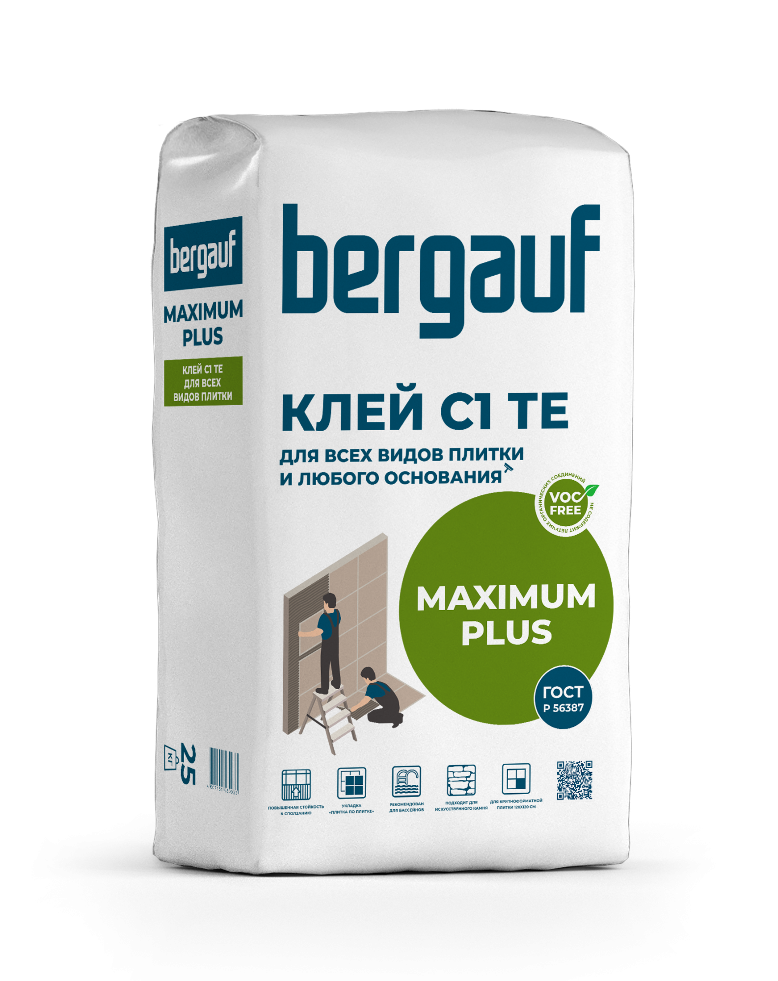 Maximum Plus — цементный плиточный клей, широко используемый для облицовки пола и стен в условиях повышенной влажности, а также для работ с бассейнами и фасадами. Он подходит для укладки керамогранита, крупноформатной плитки, а также природного и искусственного камня. Обеспечивает надежное сцепление с минеральными основаниями (каменными, бетонными, газобетонными, кирпичными, отштукатуренными поверхностями), а также с деформирующимися и критическими основаниями (ГКЛ, ГВЛ, ЦСП, старой керамической плиткой, ячеистым бетоном и железобетоном моложе 6 месяцев и др.).