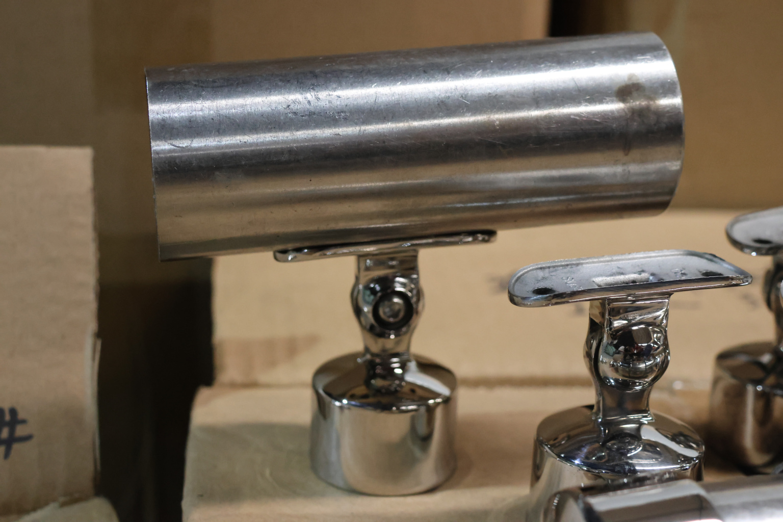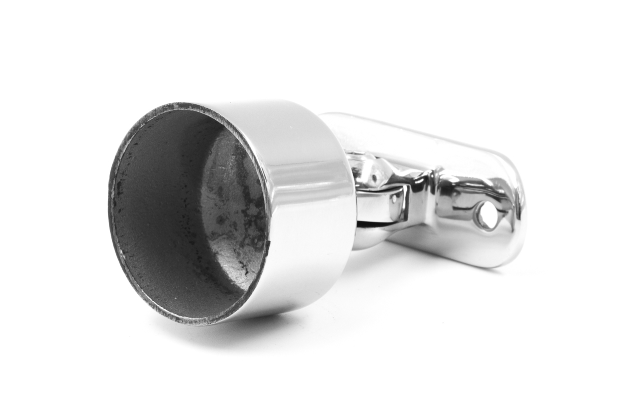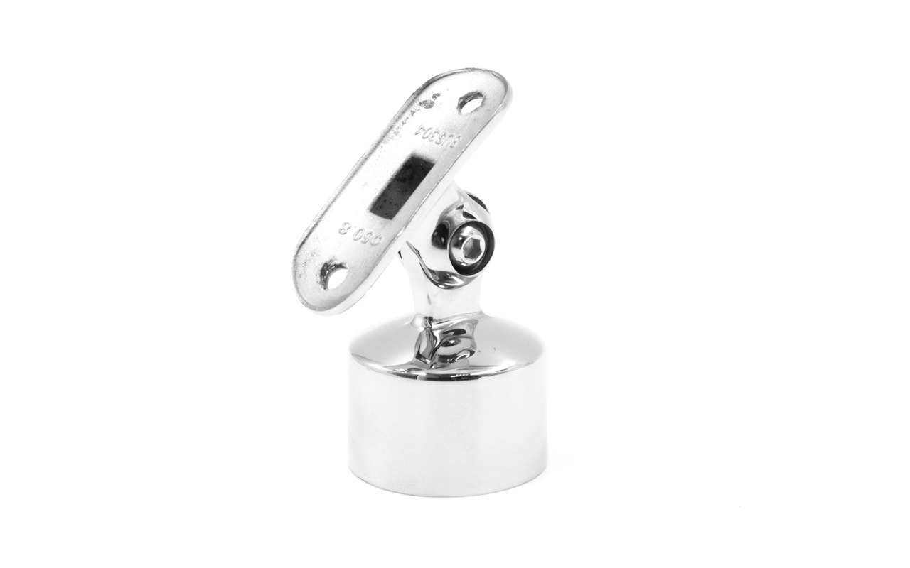 Наконечник шарнирный с регулируемым ложементом под поручень Ø50.8 мм. Качественный литой наконечник из нержавеющей стали марки AISI 304, идеально подходящий для соединения стойки диаметром Ø38.1 мм с поручнем диаметром Ø50.8 мм.